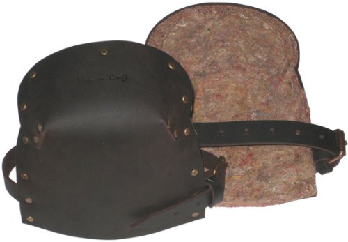 74013 Features: -Kneepad.-Material: Heavy top grain oiled leather.-0.5'' Thick felt lining for all day comfort.-Adjustable leather straps with steel buckles.-Riveted for extra strength.-Rivets with caps for safety.-Size fits all. Color/Finish: -Color: Dark brown.-Finish: Antique. Dimensions: -Dimensions: 10'' H x 9'' W x 5'' D.Customer Reviews
